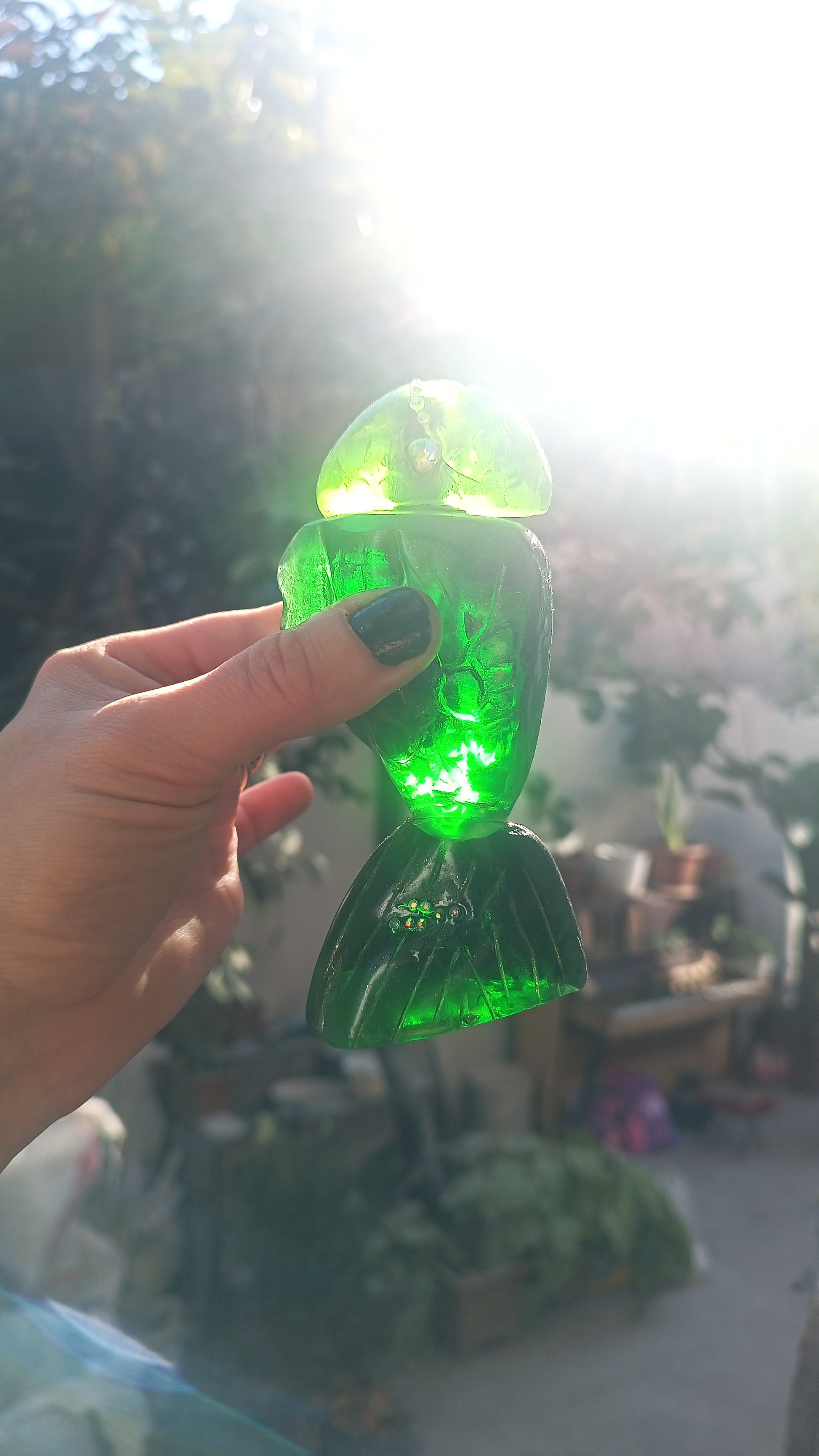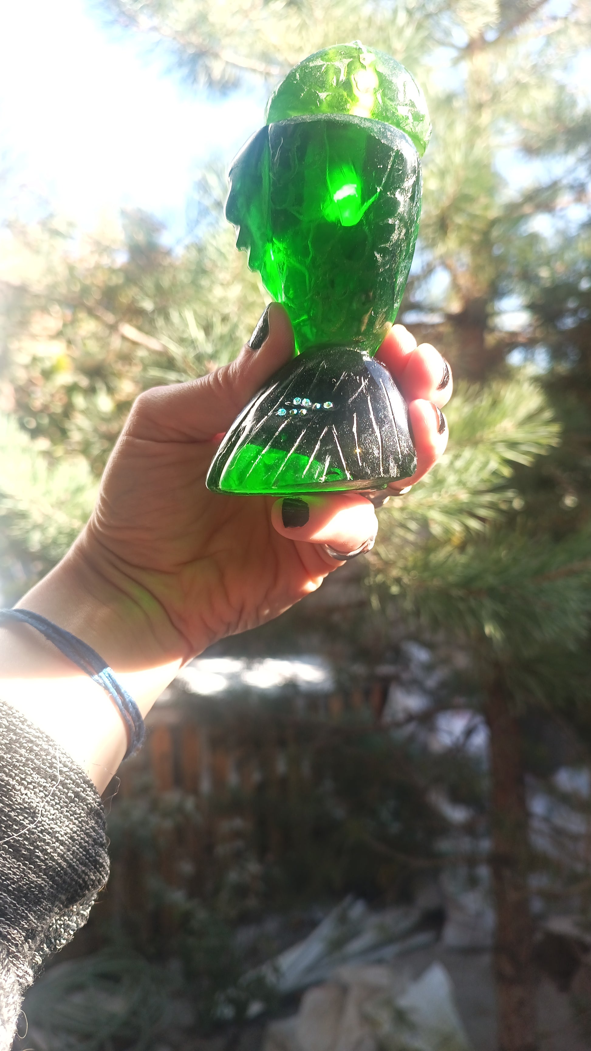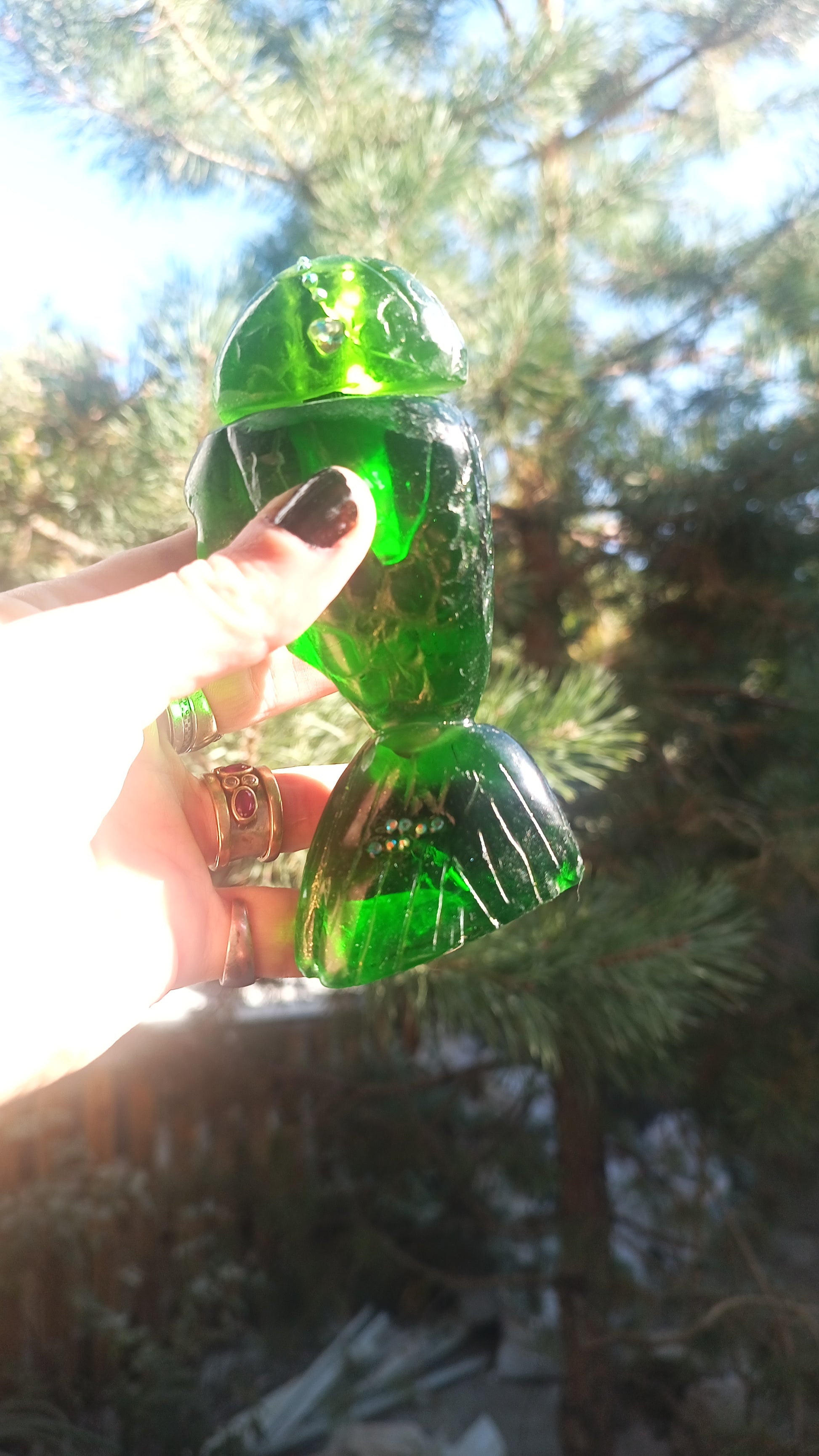 Perfume in a glass hand made bottle. Bottle is cut from optical glass, Hand-Made. The shape and color can be made according to the customer's wishes. 100% is impossible.