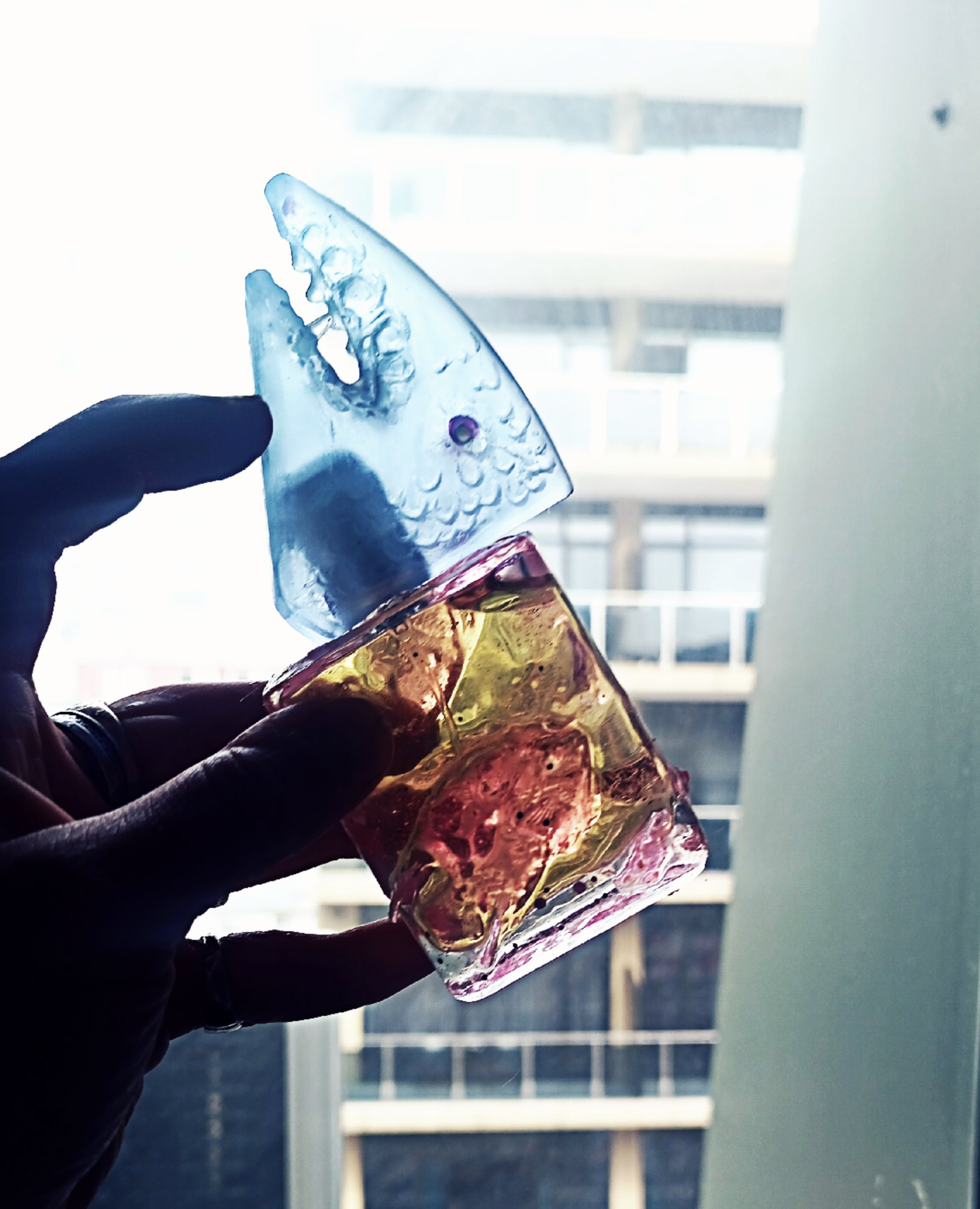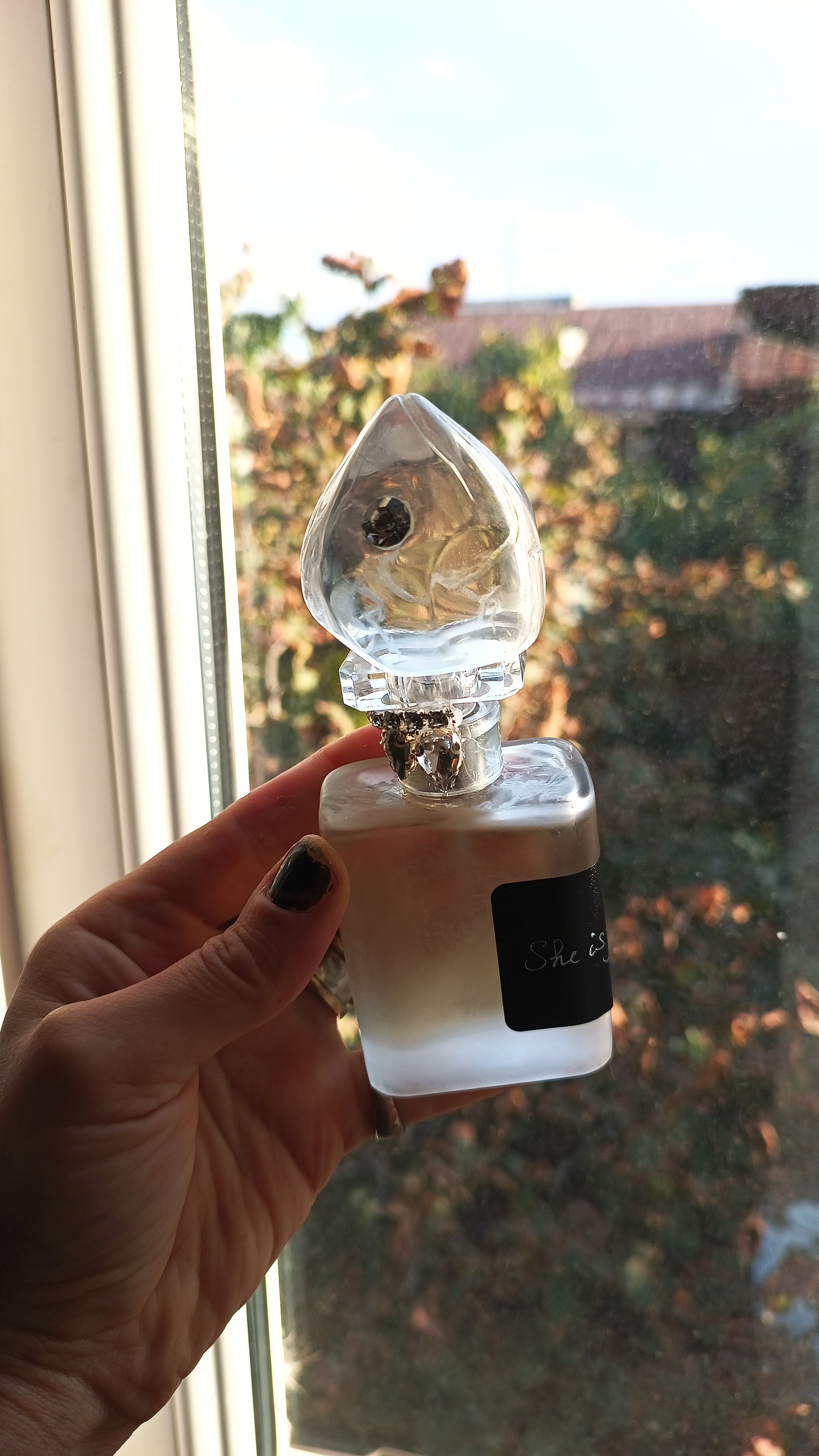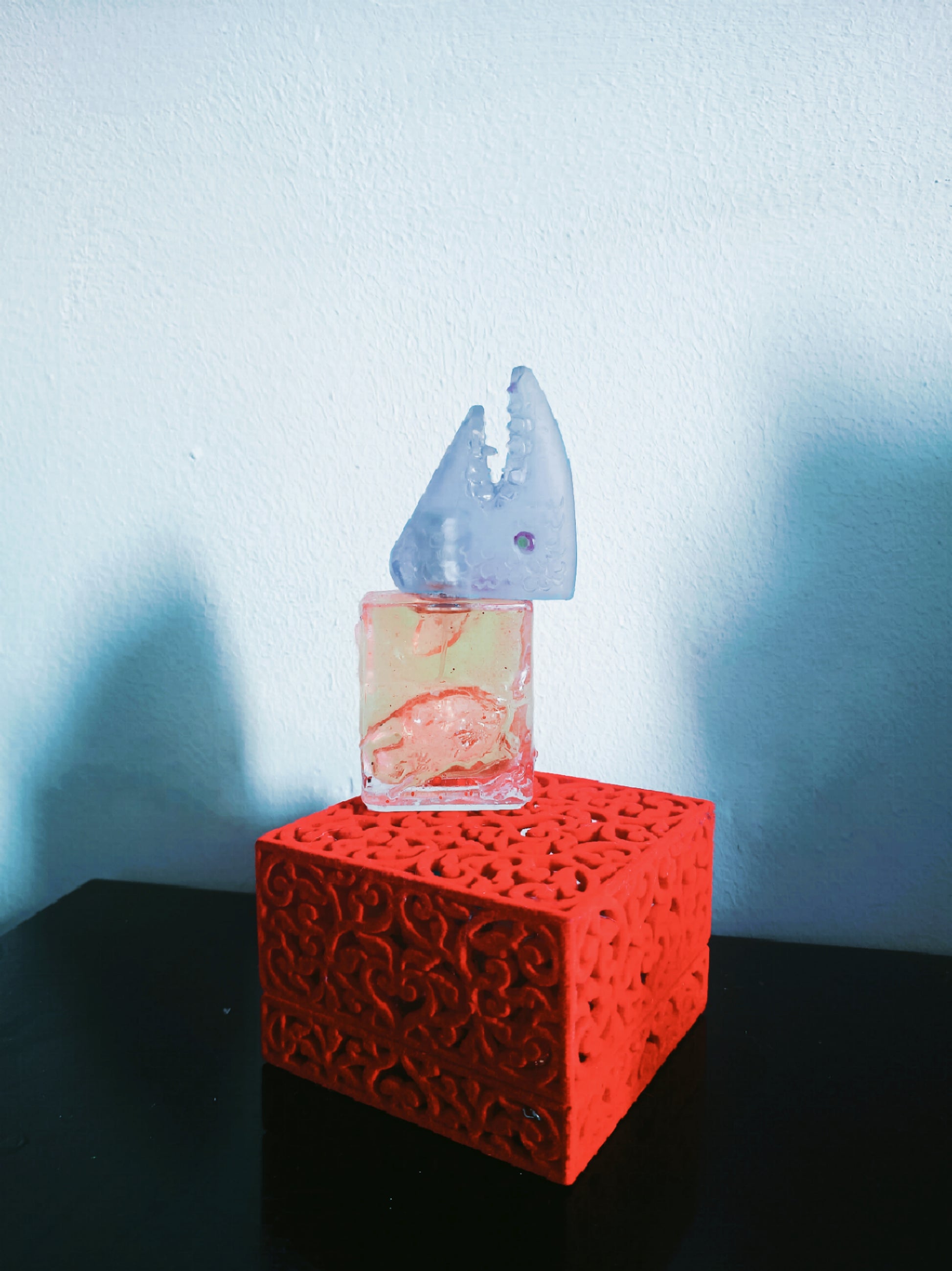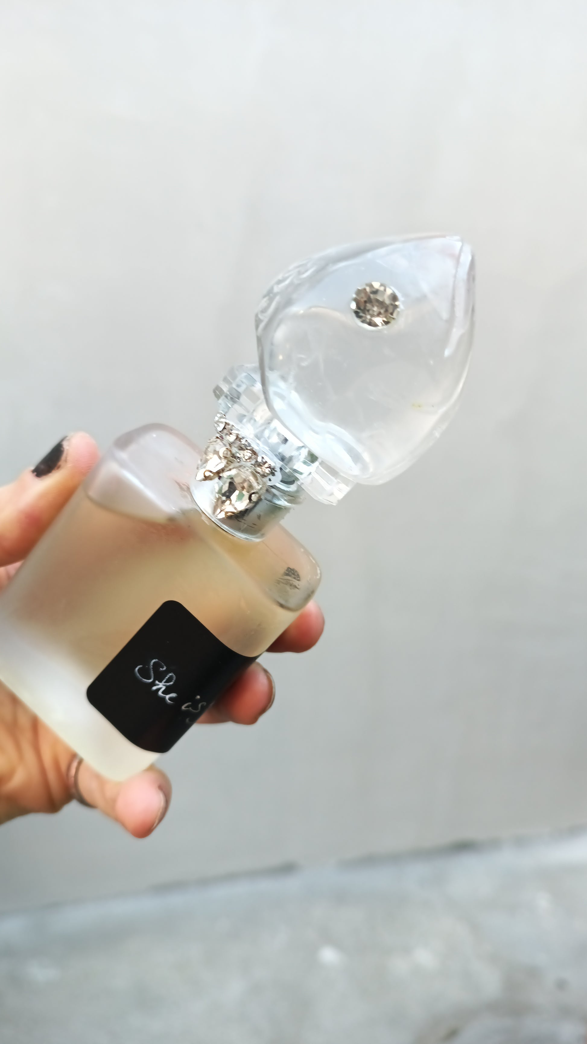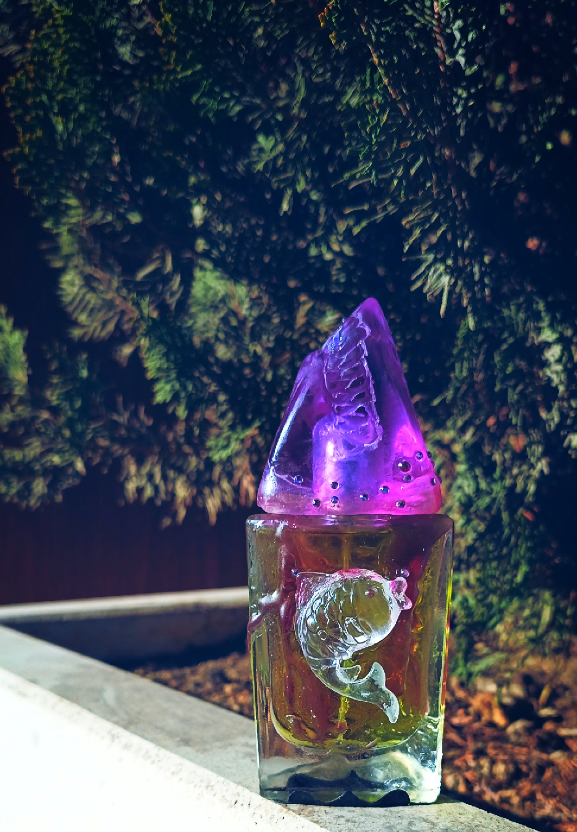 New fragrance from House of Atropa, She is Fish, esp, 50 ml, in a hand made glass bottle. The fish head cap is cut from glass.