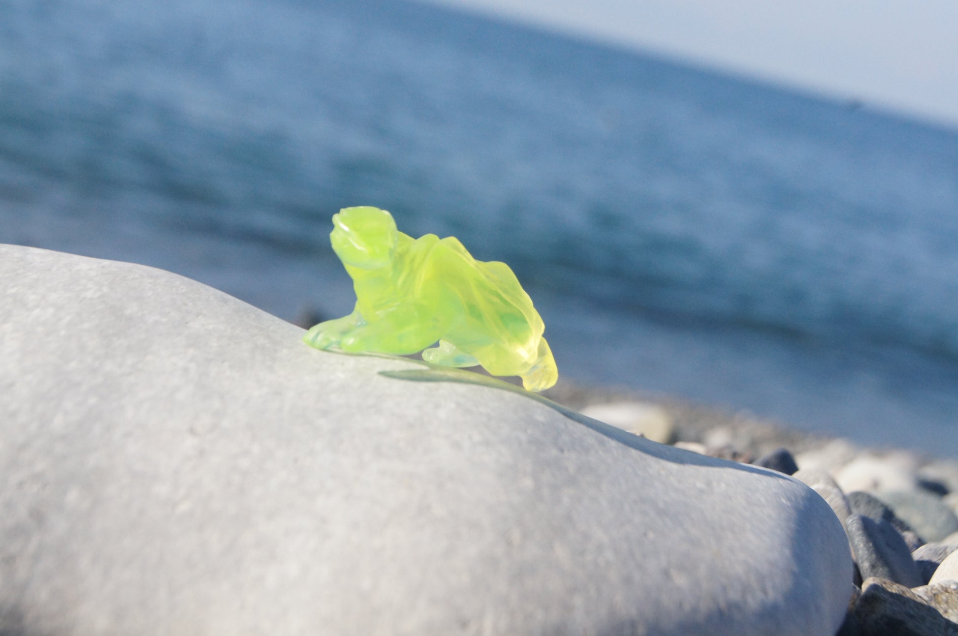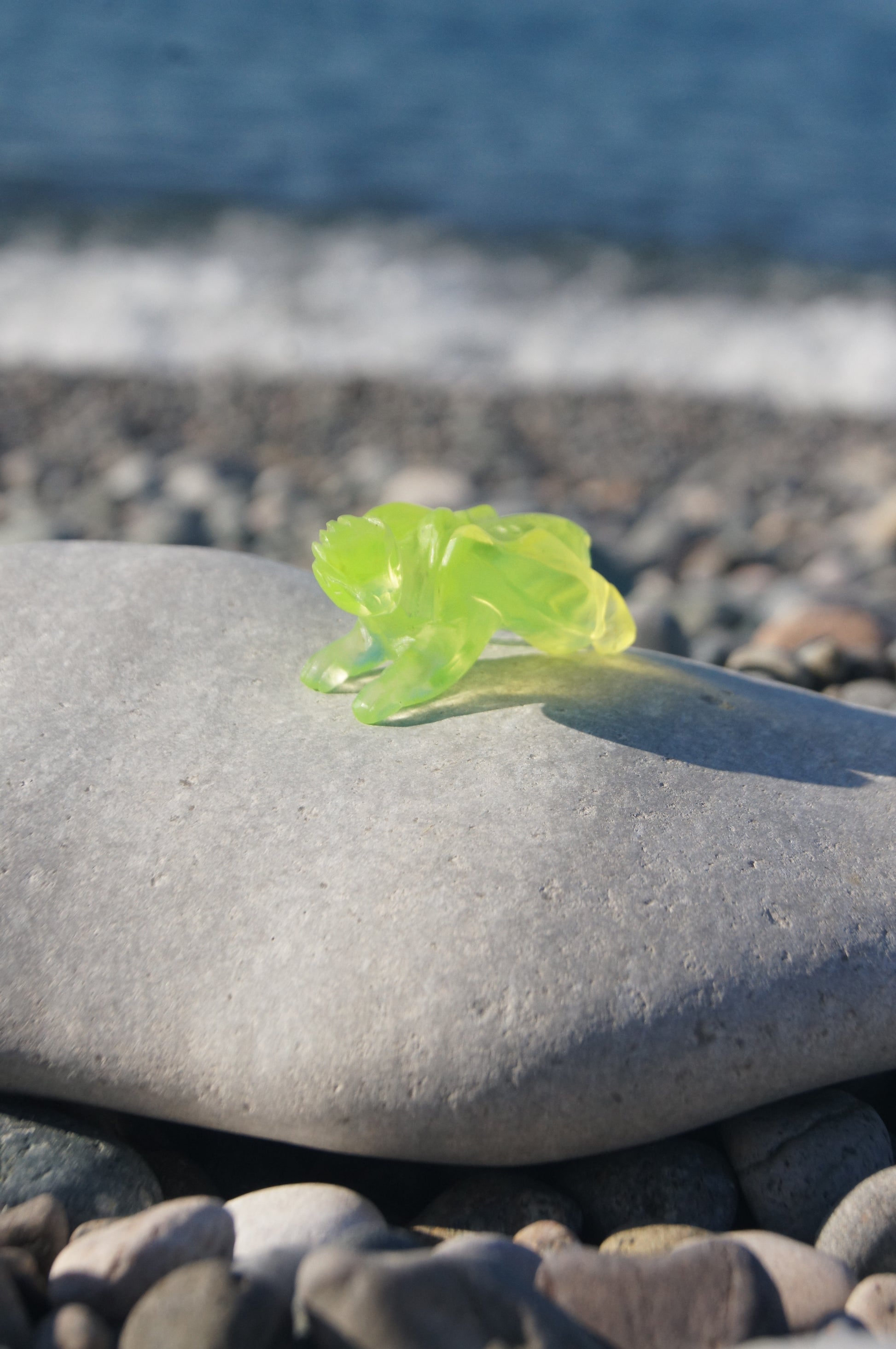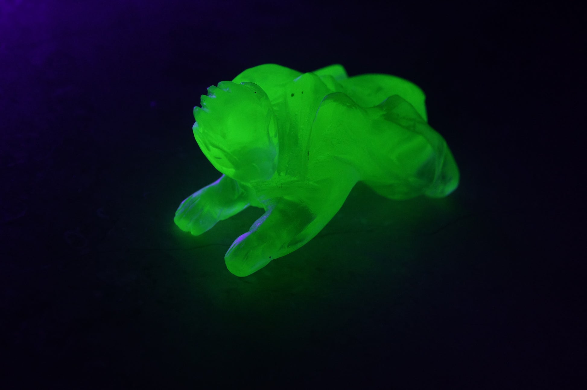 Uranium Dragon, 6 × 3 cm, hand made, cut from uranium glass. Glows in UV.
