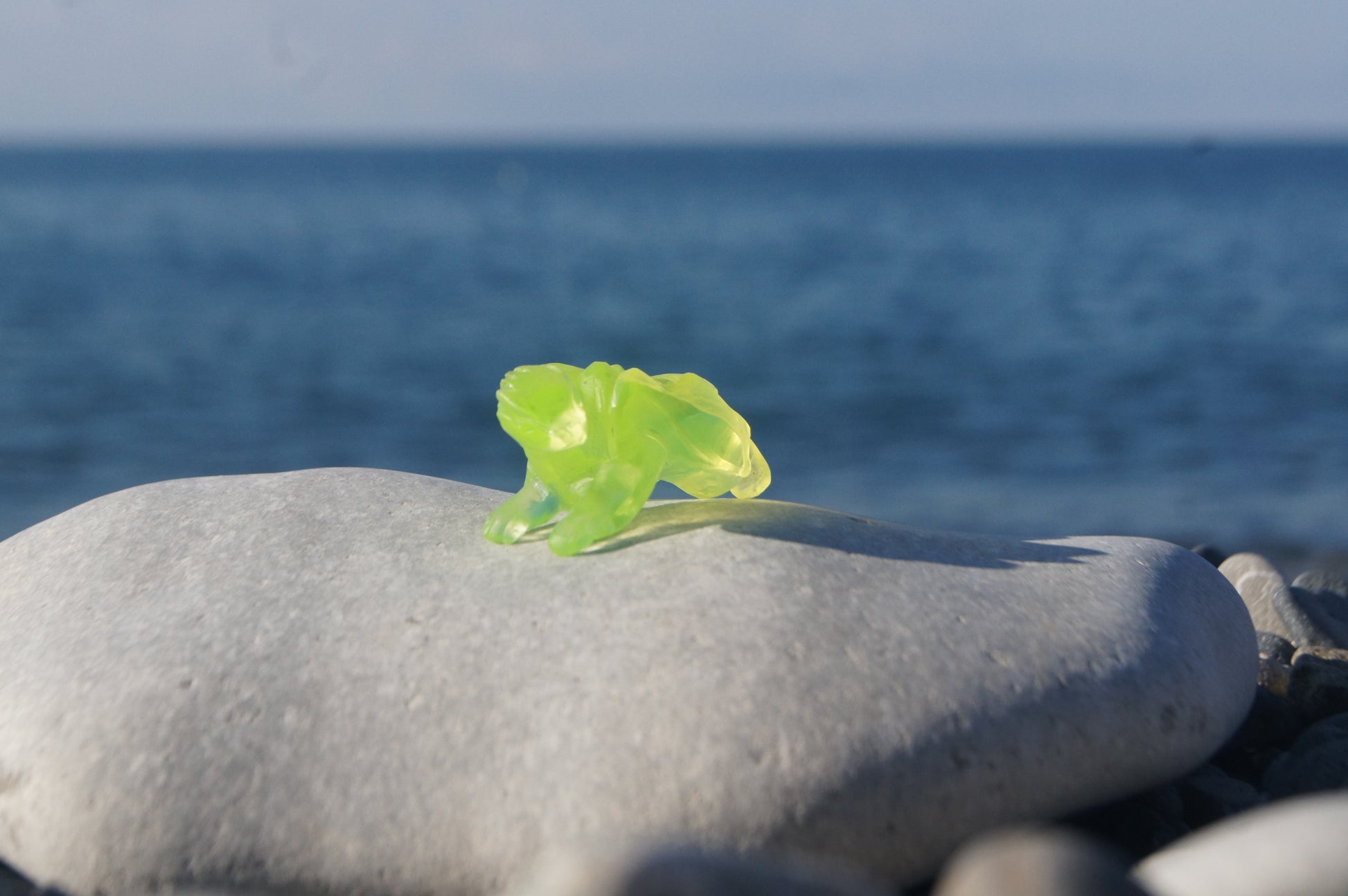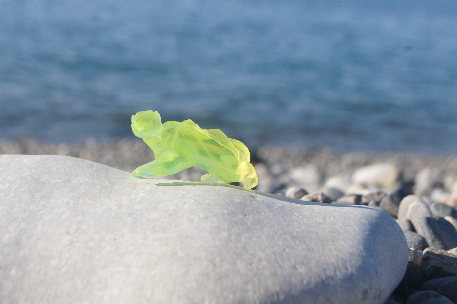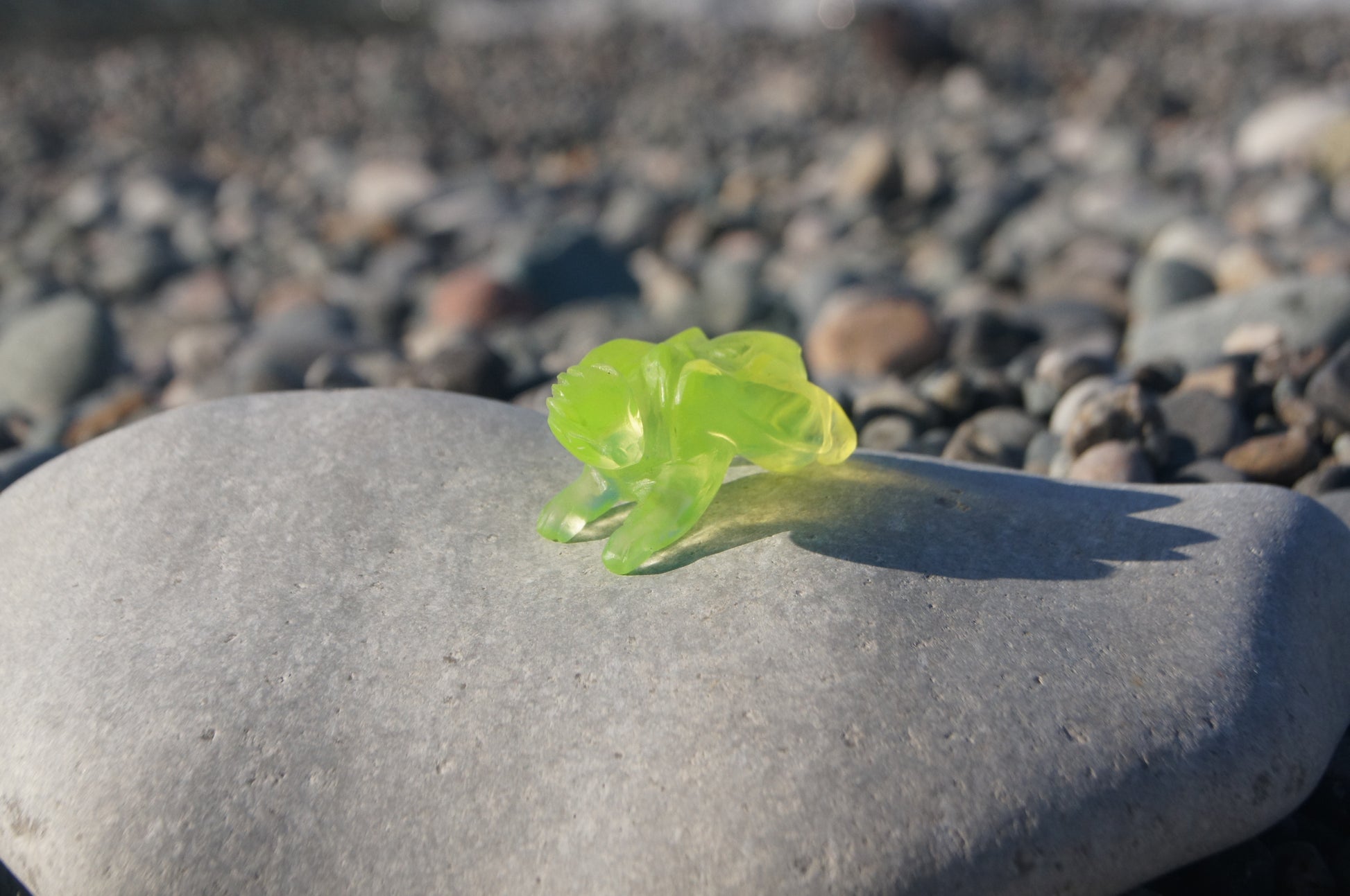 Uranium Dragon, 6 × 3 cm, hand made, cut from uranium glass. Glows in UV.